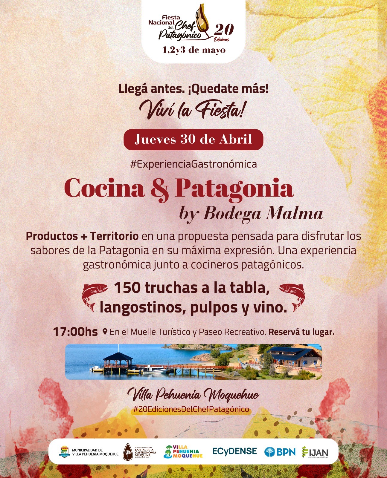 Cocina & Patagonia by Bodega Malma. La Fiesta Nacional del Chef Patagónico empieza antes. Este jueves 30 de abril te invita a vivir una experiencia única en el corazón de Villa Pehuenia Moquehue.